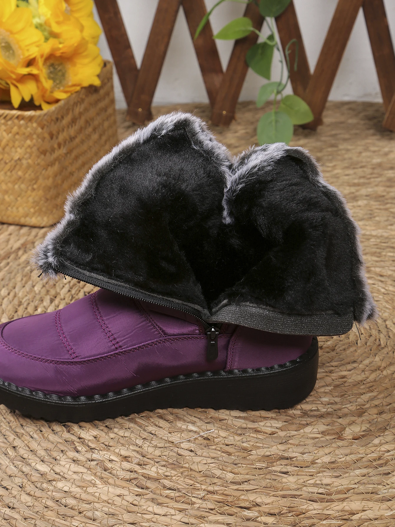 Forro Interno de Lã Artificial: Maciez e aquecimento garantido! Ideal para dias frios, oferecendo o conforto que seus pés merecem.
